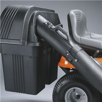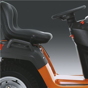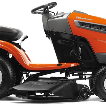 Husqvarna TS 248TXD is a powerful and comfortable side discharge tractor with sturdy ClearCut™ deck and smart, user-friendly design, developed for use in medium- to large-sized gardens. Dual Pedal-operated hydrostatic transmission and cast front axle means easy, trouble-free operation and the locking differential transmission gives superior traction in slippery conditions and slopes. Equipped with 15″ deluxe seat, soft rim steering wheel, LED lights and turn key start. Collector and BioClip® kit are available as accessories.