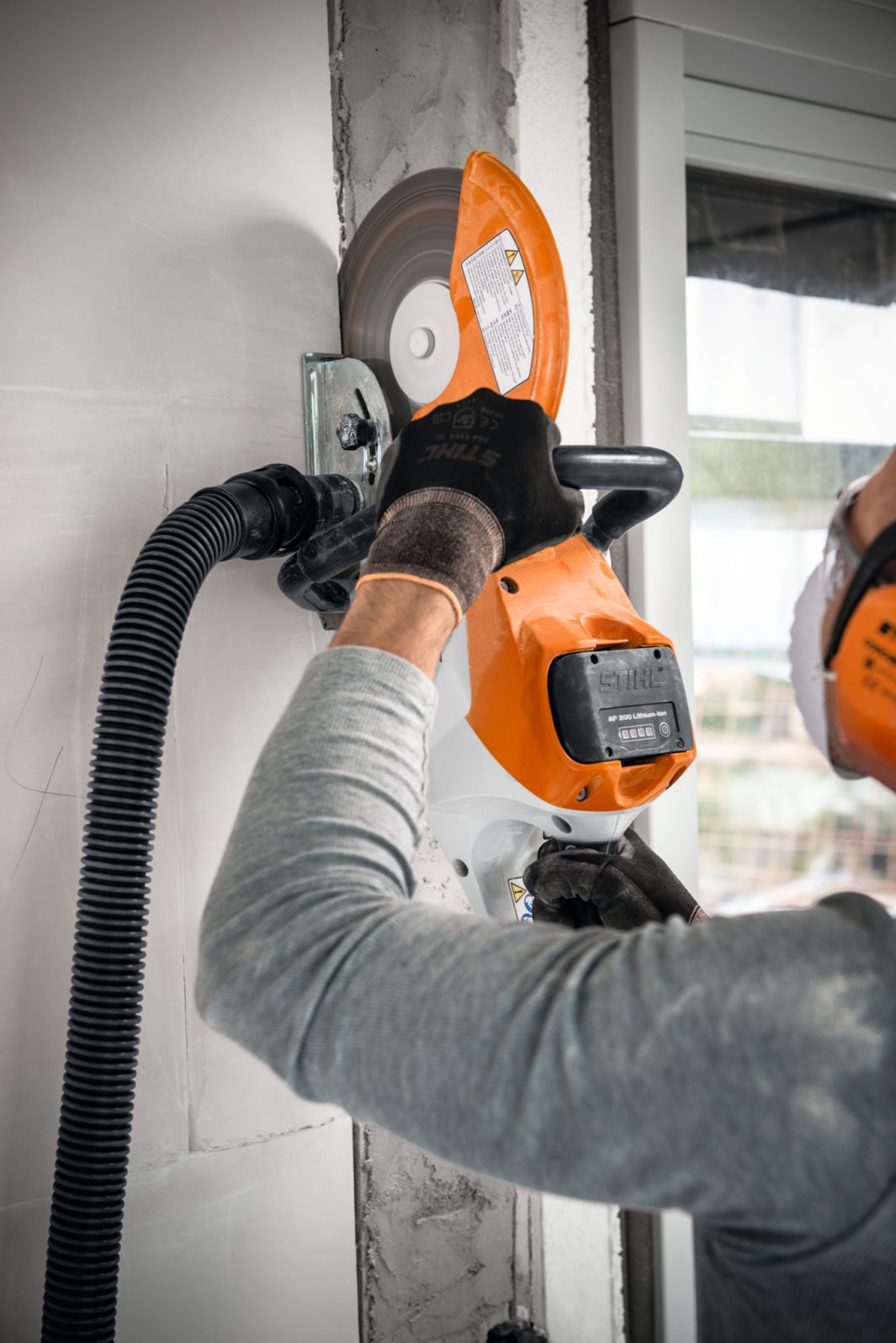Thanks to its emissions-free operation, the TSA 230 battery cut-off machine can even be used inside buildings, for example in factory halls. In settings like these, it is particularly important that dust generated during cutting is immediately bound. The integrated water connection takes care of that. Alternatively, you can reduce dust exposure with the optional STIHL depth stop. This ensures that the dust generated is extracted directly into a connected wet and dry vacuum cleaner, such as the STIHL SE 133 ME.